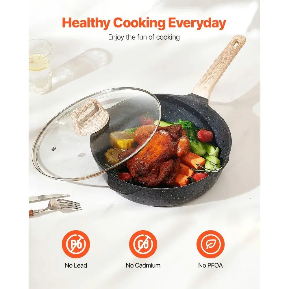 - Premium Material: Made with a Maifan stone non-stick coating, this cookware set ensures easy release and effortless cleaning. The interior withstands temperatures up to 380°C, making it reliable for daily use. The cookware does not include lead, cadmium, and PFOA. Cook with less oil for a healthier meal experience