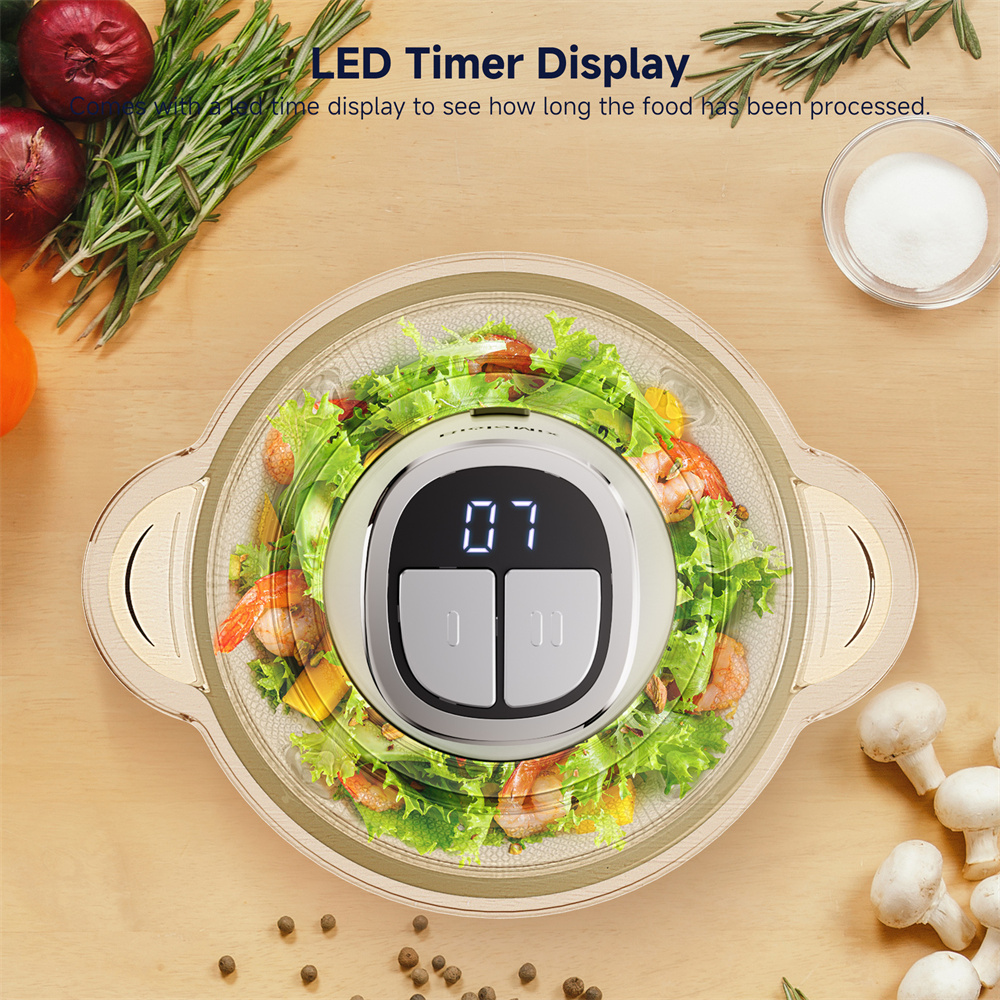 - Smart LED Timer: Tracks cumulative processing time. Resets when lifted for precise control.